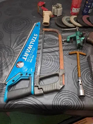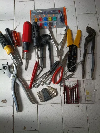 Se vende un lote de herramientas variadas, ideal para reparaciones y trabajos manuales. - Incluye llaves, destornilladores, martillos y más. - Herramientas de diferentes tamaños y materiales. - Perfectas para tener en casa o en el taller.