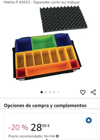 Makita P-83652 - Separador corto acc.makpac Usos específicos del productoAlmacenamiento MaterialPlástico Función especialCompatible con fundas entrelazadas MAKPAC ColorVerde, Azul, Amarillo, Naranja, Rojo MarcaMakita Tipo de montajeMontaje en mesa Caja Makita con caja de colores Juego de brocas – brocas y accesorios Accesorios Makita de calidad para herramientas eléctricas y herramientas de jardín Número de modelo: P-83652