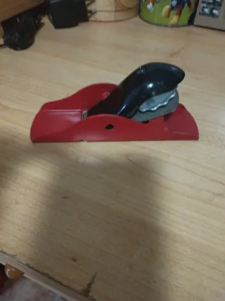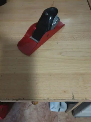 Cepillo de carpintero con base roja y mango negro. _ venta en persona -Cuerpo metálico. - Hoja de corte expuesta.