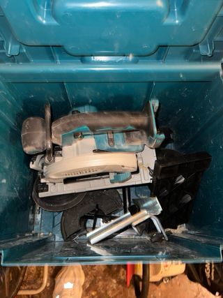 Sierra circular inalámbrica de la marca Makita. - Motor BL (Brushless). - Diseño ergonómico para un mejor agarre. - Base ajustable para cortes en ángulo.