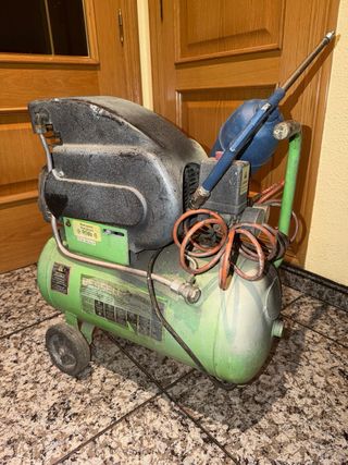 Vendo compresor de 50 litros y 2 CV de potencia en excelente estado. Ideal para pintura, bricolaje y herramientas neumáticas. Presión de hasta 8-10 bares con regulador. Doble manómetro de control. Ruedas y asa para fácil transporte.