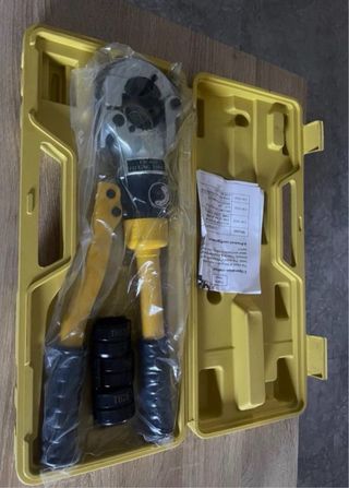 Herramienta de presión hidráulica para instalaciones multicapa. Incluye diferentes boquillas para adaptarse a diversas medidas (matrices TH 16, 20, 25 y 32). - Cuerpo robusto de metal. - Mangos ergonómicos para un mejor agarre. - Maletín de transporte incluido.