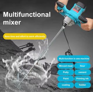 Mezcladora eléctrica para materiales de construcción. Incluye manual de instrucciones. 2100 WATIOS - Mango ergonómico para un mejor agarre. - Varilla de mezcla de metal. - Cable de alimentación.