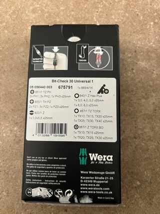 Conjunto de puntas Wera Bit-Check Universal 1. - Incluye 30 piezas. - Tecnología Rapidaptor. - Diseño Torsion. Nuevo en amazon 50 euros
