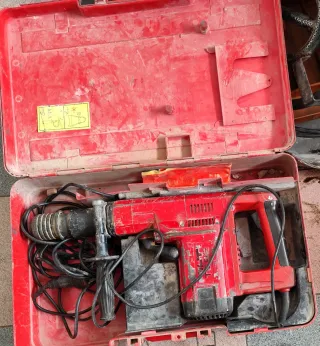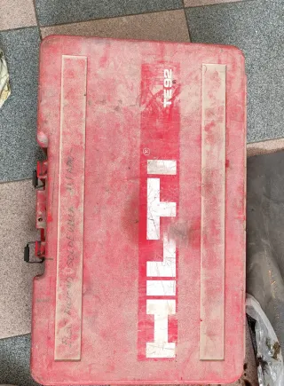 Maletín rojo de la marca Hilti, modelo TE92. Presenta un diseño robusto y práctico para el transporte de herramientas. - Color: Rojo - Marca: Hilti - Modelo: TE92 - Cierres laterales negros