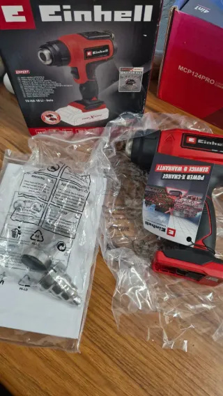 Pistola de aire caliente Einhell TE-HA 18 Li-Solo, parte de la línea Power X-Change. - Incluye accesorios. - Diseño ergonómico. - Fabricada en Alemania.