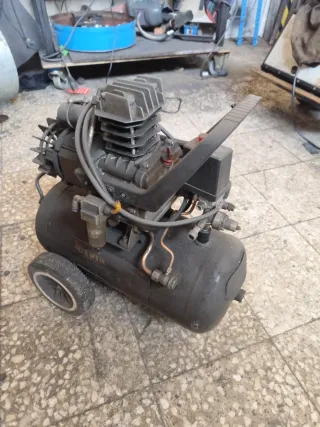 Compresor de aire Cevik con depósito de 24 litros. Pierde aire. Para quien sepa arreglarlo. No es de la botella es de alguna junta o conexión - Depósito de 24 litros. - Asa para transporte. - Ruedas para movilidad. #compresor #aire #compresordeaire #taller #herramientas