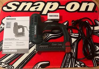 Grapadora eléctrica Parkside PET 25 C3. - Boca de grapado estrecha para piezas finas. - Permite grapar más cerca de los bordes. - Profito snello para trabajar cerca de los bordes y las partes blandas. -Totalmente nuevo en su caja sin abrir.