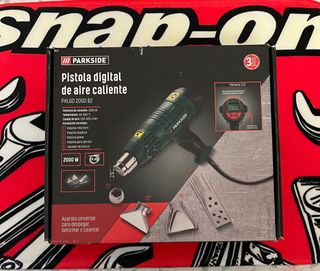 Pistola de aire caliente digital Parkside. - Potencia de conexión: 2000 W - Temperatura: 50-650 °C - Caudal de aire: 250-500 l/min - Incluye 5 accesorios: boquilla reductora, boquilla espátula, boquilla plana, boquilla para parrilla y rascador de pintura. - Pantalla LCD para ajuste de temperatura. - Cable de 4 metros. Posibilidad de entrega en mano. #herramienta #parkside #nuevo #enviorapido