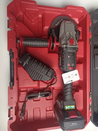 Amoladora angular de la línea Parkside Performance, ideal para trabajos exigentes. Se presenta en su maletín original. - Incluye cargador y batería. - Mango auxiliar para mayor control. - Manual de instrucciones.