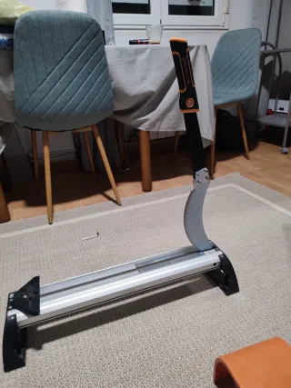 Herramienta para cortar parquet. - Material: Aluminio y plástico. - Color: Plateado y naranja.