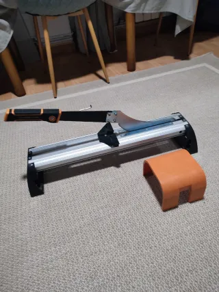 Herramienta para cortar parquet. - Material: Metal y plástico. - Color: Negro, naranja y plateado.