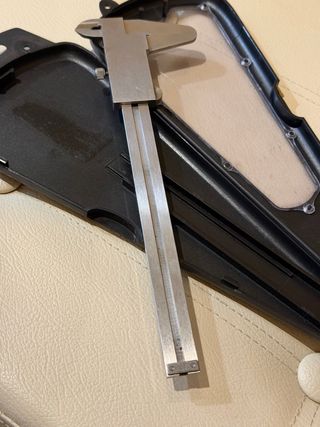 Pie de rey de precisión de la marca Mitutoyo, fabricado en Japón. - Cuerpo metálico. - Escala en milímetros y pulgadas. Le falta la tira de profundidad