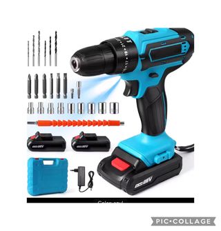 Taladro atornillador 48V potente y versátil, ideal para bricolaje y uso profesional. Cuenta con ajuste de par 25+3, 2 velocidades, función atornillador, taladro y percusión. Incluye 2 baterías Li-ion 2.0Ah para mayor autonomía, cargador y maletín rígido con completo kit de accesorios: brocas, puntas y vasos. Diseño ergonómico con luz LED integrada para trabajar en zonas con poca iluminación. Mandril de 10 mm y velocidad hasta 1350 rpm. Ligero, cómodo y fácil de manejar. Perfecto para madera, metal y paredes. Se realizan envíos a toda España. Producto nuevo, listo para usar. Ideal para casa o taller.