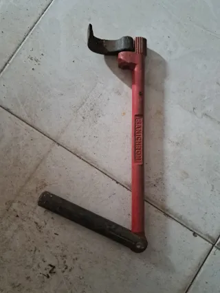 Esta herramienta es una llave de lavabo de la marca Virax, diseñada específicamente para apretar o aflojar tuercas y racores en lugares de difícil acceso. Tipo: Llave de lavabo para fontanería. Marca: Virax. Uso: Ideal para lavabos, bañeras, fregaderos o bidés.