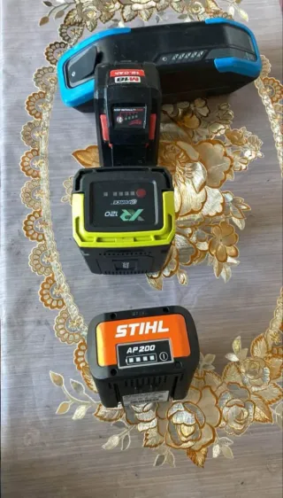 Se venden 4 baterías para herramientas eléctricas. El precio es de 100€ por unidad. - Batería M18 de 12.0 Ah. - Batería Ryobi 18V ONE+. - Batería Stihl AP 200. - Batería Tec-Energy Concept.