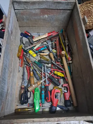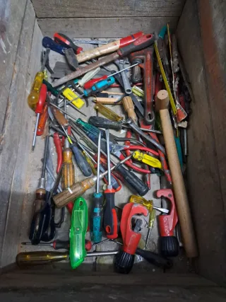 Se vende un lote de herramientas variadas, ideal para tener a mano para reparaciones y proyectos. - Incluye destornilladores de diferentes tamaños y tipos. - Variedad de llaves inglesas y de tubo. - Alicates y tenazas. - Cortatubos. - Martillo. - Cutter. - Mango de sierra. - Herramientas de mano diversas.
