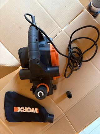 Vendo cepillo eléctrico Worx modelo WX615, ideal para rebajar, alisar y dejar la madera fina como seda. 🔹 Marca: Worx 🔹 Modelo: WX615 🔹 Ancho de cepillado: 82 mm 🔹 En muy buen estado, funciona perfectamente 🔹 Poco uso Perfecto para carpintería, bricolaje y proyectos en casa o taller. Muy cómodo de manejar y con gran calidad de acabado. - Incluye bolsa para el serrín. - Incluye llave hexagonal.