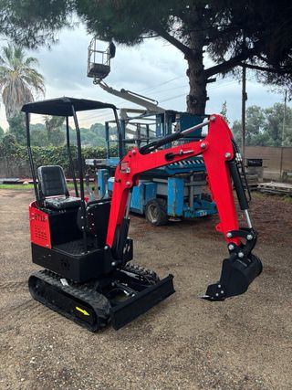 Mini excavadora diésel en buen estado, nueva!! lista para trabajar. - Color rojo y negro. - Sistema de orugas para mayor tracción. - Techo protector. - Asiento del operador. - Brazo excavador con cazo de 40cm incluido Hoja de relleno Precio más IVA se puede enviar a toda España consulte precio de envío