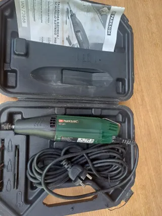 Talladora eléctrica Parkside en su maletín. - Incluye manual de instrucciones. - Maletín de transporte.