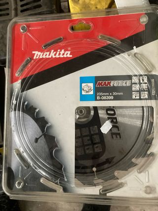 Lote de discos de corte Makita Makforce. - Diámetro: 235 mm. - Eje: 30 mm. - Modelo: B-08399. - Cantidad de dientes: 20x. - De la referencia B-08981, 3 unidades
