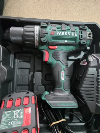 Atornilladora taladradora y percutor recargable Parkside. -Se uso 2 veces la atornilladora, y el petcutor hesta nuebo. - Modelo: PABS 20-LI G8 - Incluye cargador y 3 baterías, 2 de 2.0Ah y 1 de 4.Ah. - Manuale de instrucciones. -Incluye estulle de destornilladores y brocas Parkside, nuebo.