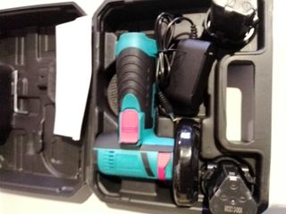 Amoladora Angular con dos baterías de Litio de 12V. - Cargador USB. - Llave Allen. - Dos discos - Voltaje: DC 12V - Capacidad de batería: 2000mAh Es muy funcional y pule, lija, esmerila metal así como madera. Perfecta para tu trabajo y proyectos de bricolaje. Entrego en mano en Castellón Capital.