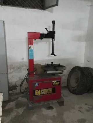 Se vende máquina para el montaje de ruedas de vehículos. - Marca: Corchi - Color: Rojo y negro - Incluye brazo de montaje