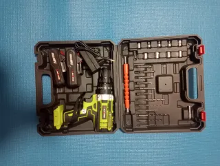 Taladro percutor y atornillador a batería, ideal para trabajos en el hogar o profesionales. Incluye maletín con accesorios. - Taladro percutor atornillador. - Dos baterías de 28V. - Cargador de batería. - Maletín de transporte. - Juego de brocas,bocas y puntas. - Maletín de transporte incluido. - Alargador para sitios difíciles. - Cargador de batería