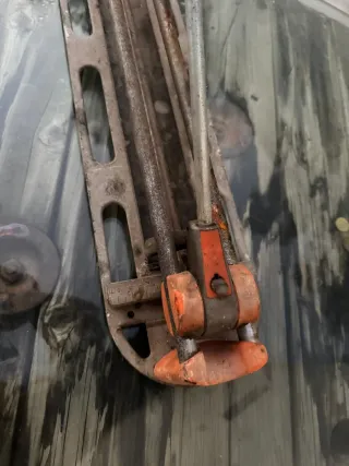 Herramienta para cortar azulejos. - Mango de plástico naranja. - Guías metálicas. - Base de metal.