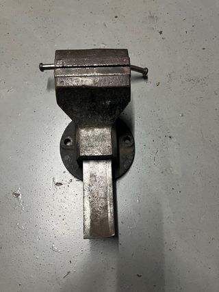 Tornillo de banco de metal, ideal para sujetar piezas. Su base circular permite fijarlo a una superficie. - Construcción robusta de metal. - Base redonda para montaje. Precio negociable