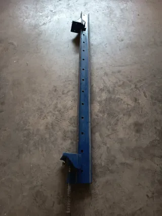 Sargento tipo gato de viga en color azul. Tengo 2 precio por unidad. Aprite hasta 130 cm. - Construcción robusta de metal. - Diseño con múltiples orificios para ajuste. - Mecanismo de apriete con tornillo.