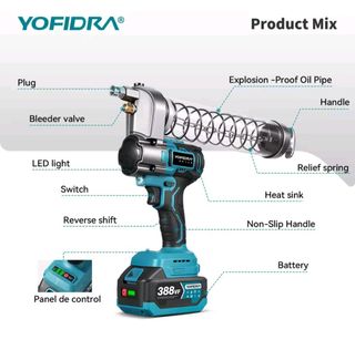 Pistola engrasadora eléctrica potente de 980W, con presión máxima de 15000 PSI y depósito de 620 cc, ideal para trabajos de mantenimiento rápidos y eficaces. Diseño cómodo antideslizante y luz LED para trabajar con más facilidad. Incluye juego de 2 baterías, 1 pistola engrasadora, 4 accesorios, 2 baterías, 1 cargador europeo y 1 maletín. Ver sin compromiso. Atiendo llamadas y WhatsApp 658 060 891. Envíos contrareembolso.