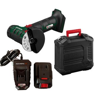 (NUEVA A ESTRENAR) Amoladora angular recargable 20 V parkside * INCLUYE BATERÍA 20V 2Ah Y CARGADOR * Con regulación y capucha protectora 2 en 1 ajustable sin herramientas para cortar y amolar Apta para discos de corte convencionales (Ø 76 mm) Cambio sencillo de los discos gracias a su sistema de bloqueo del husillo SPINDLE LOCK. Accesorios incluidos: 1 disco de corte para metales no ferrosos, 1 llaves hexagonal. Velocidad de vacío en vacío: 19000 rpm. Diámetro del disco de corte: 76 mm.