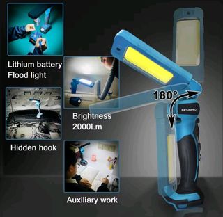 Luz de trabajo LED potente de 2000 lúmenes, perfecta para trabajos de noche o zonas con poca iluminación. Cuenta con cabezal giratorio de 360° para ajustar la luz a cualquier ángulo y alcanzar hasta 50-100 metros. Diseño estable para usar manos libres y con ventilación que mejora la disipación de calor y alarga su vida útil. NO INCLUYE BATERÍA. Cualquier herramienta de mi perfil las baterías son compatibles con la linterna y con todas las herramientas. Ver sin compromiso. Atiendo llamadas y WhatsApp 658 060 891. Envíos contrareembolso.