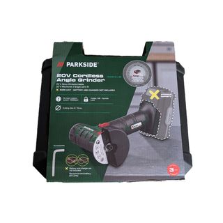(NUEVA SIN ABRIR) Amoladora angular recargable 20 V * NO INCLUYE NI BATERÍA NI CARGADOR * Con regulación y capucha protectora 2 en 1 ajustable sin herramientas para cortar y amolar Apta para discos de corte convencionales (Ø 76 mm) Cambio sencillo de los discos gracias a su sistema de bloqueo del husillo SPINDLE LOCK. Accesorios incluidos: 1 disco de corte para metales no ferrosos, 1 llaves hexagonal. Velocidad de vacío en vacío: 19000 rpm. Diámetro del disco de corte: 76 mm. Para cargadores y baterías marca Parkside 20 V.