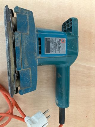 Lijadora eléctrica Black & Decker. - Modelo: Dual Action Sander. - Voltaje: 220/240 V~. - Potencia: 250 W. - Amperaje: 1.25 A. - Velocidad: 4000/MIN.