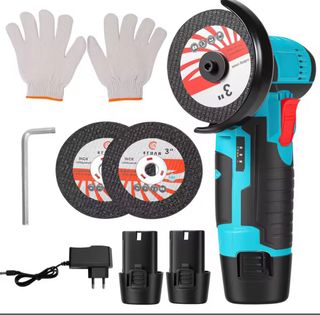Mini amoladora angular con motor de alta velocidad. - Incluye dos baterías recargables. - Viene con cargador y llave Allen. - Incluye dos discos de corte. - Incluye un par de guantes de protección. Whatsapp: 690028637