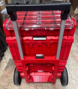 Sistema de almacenamiento modular Datacol en color rojo nuevo a estrenar. Ideal para organizar herramientas y accesorios. - Múltiples compartimentos. - Tapa transparente con divisiones. - Cajones extraíbles.