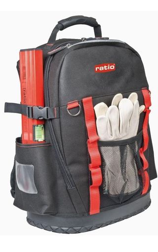 Mochila porta herramientas con lámina porta herramientas extraíble. Marca Ratio MaterialPVC ColorMulticolor Nivel de resistencia al aguaResistente al agua 38x18x47 cm. Multiples compartimentos, espacios laterales para transportar herramientas largas. Cierres laterales de seguridad. Soporte interior portaherramientas extraíble con 52 bolsillos. Correas acolchadas. Fondo PVC de alta resistencia. Carga máxima 30 kg