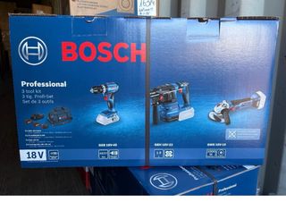 Se vende kit de 3 herramientas Bosch Professional. - Incluye taladro GSB 18V-45, martillo GBH 18V-22 y amoladora GWS 18V-10. - Incluye 2 baterías de 5.0Ah y cargador. - Incluye bolsa de herramientas. - Voltaje: 18V.