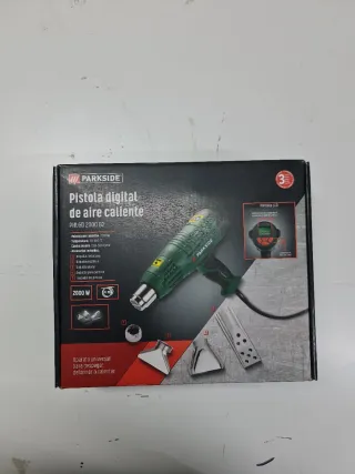 Pistola de aire caliente digital de la marca Parkside. - Modelo: PHLGD 2000 B2. - Potencia: 2000 W. - Incluye accesorios. - Pantalla digital.