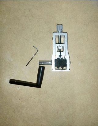 Herramienta para pelar cables de forma eficiente. - Rango de pelado: 2-20 mm. - Construcción robusta de aluminio. - Incluye manivela y llave en L.