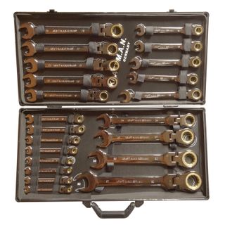 Completo maletín de herramientas ideal para cualquier reparación en el hogar o trabajos de taller. Incluye 22 llaves articuladas con carraca, perfectas para trabajar con rapidez y acceder a zonas difíciles sin retirar la herramienta. El maletín está fabricado en aluminio resistente, ligero y duradero, y las herramientas son de acero Cromo Vanadio, garantizando gran resistencia y larga vida útil. Medidas aproximadas del maletín: 58 × 30 × 7 cm, con un peso de 7 kg. Contiene llaves en medidas 6, 7, 8, 9, 10, 11, 12, 13, 14, 15, 16, 17, 18, 19, 20, 21, 22, 23, 24, 27, 30 y 32.