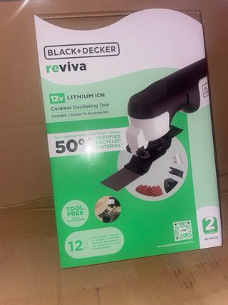 Multiherramienta BLACK+DECKER Reviva en color blanco y negro. Batería de litio Corta, lija, raspa, esmerila Incluye varios accesorios como se ven en la caja