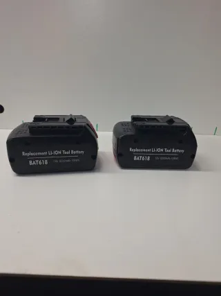 Se venden dos baterías de repuesto para herramientas Bosch. - Modelo: BAT618 - Tipo: Li-Ion - Voltaje: 18V - Capacidad: 6000mAh (108Wh)