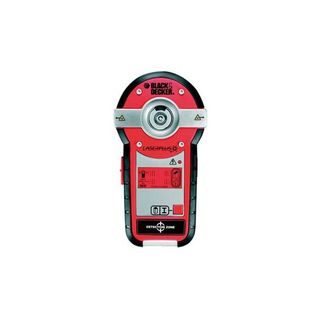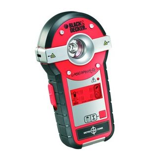 Nivel láser de la marca Black & Decker, modelo Laserplus. Dispositivo de medición con luz integrada. - Diseño en color rojo y negro. - Pantalla digital. - Zona de detección marcada.