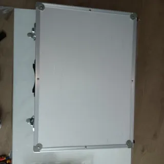 Maleta de herramientas con acabado plateado y negro. - Asa central para transporte. - Cierres de seguridad.
