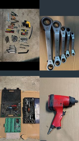 Se vende lote de herramientas variadas, ideal para tu taller o para reparaciones. Lo vendo porque no lo uso, hay algunas que tienes mas desgaste pero todas funcionan y que destaque hay juego llaves fijas de carraca me costaron 60€, el destornillador electrico RUPES, caja herramienta pequeña a estrenar, las otras dos en buen estado y completas, pistola de impacto vieja pero funciona bien y con fuerza - Incluye llaves fijas y de carraca. - Juego de vasos y extensiones. - Destornilladores y puntas. - Alicates y tenazas. - Llave de impacto neumática. - 3 maletines completos Se regala caja de herramientas Se puede vender separado