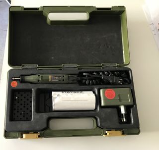 Herramienta rotativa de precisión Proxxon Micromot en buen estado. Incluye maletín, fuente de alimentación y piedra abrasiva esférica instalada, ideal para pulir y desbastar. Motor silencioso, hasta 20 000 rpm. Perfecta para bricolaje fino, modelismo y pequeñas reparaciones. Funciona perfectamente. Solo envío.
